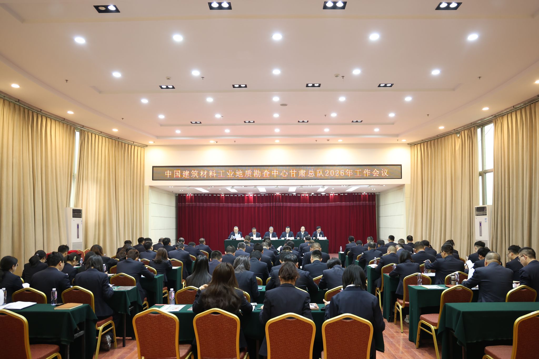 1月30日,甘肃总队召开2026年工作会议。会议以习近平新时代中国特色社会主义思想为指导,全面贯彻党的二十大和二十届历次全会精神,贯彻落实集团、地勘中心2026年工作会议精神,系统总结总队2025年和“十四五”工作成绩,研究布局“十五五”基本思路,全面部署2026年重点工作。总队党委书记、总队长陈小龙作了题为《凝心聚力 开拓创新 提质增效 平稳有序推进总队高质量发展新篇章》的工作报告。会议由党委副书记、常务副总队长张宇主持。