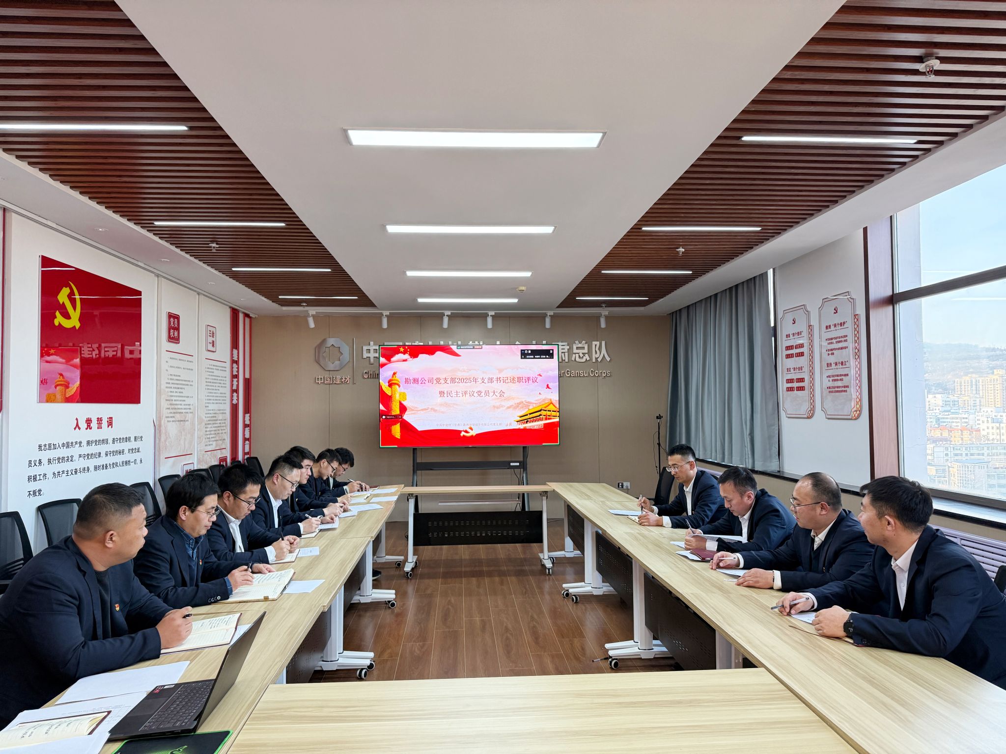 12月24日下午,勘测公司党支部在中材大厦11楼会议室组织召开2025年度支部书记述职评议暨民主评议党员大会。会议由党支部书记王智强主持,全体党员参加。