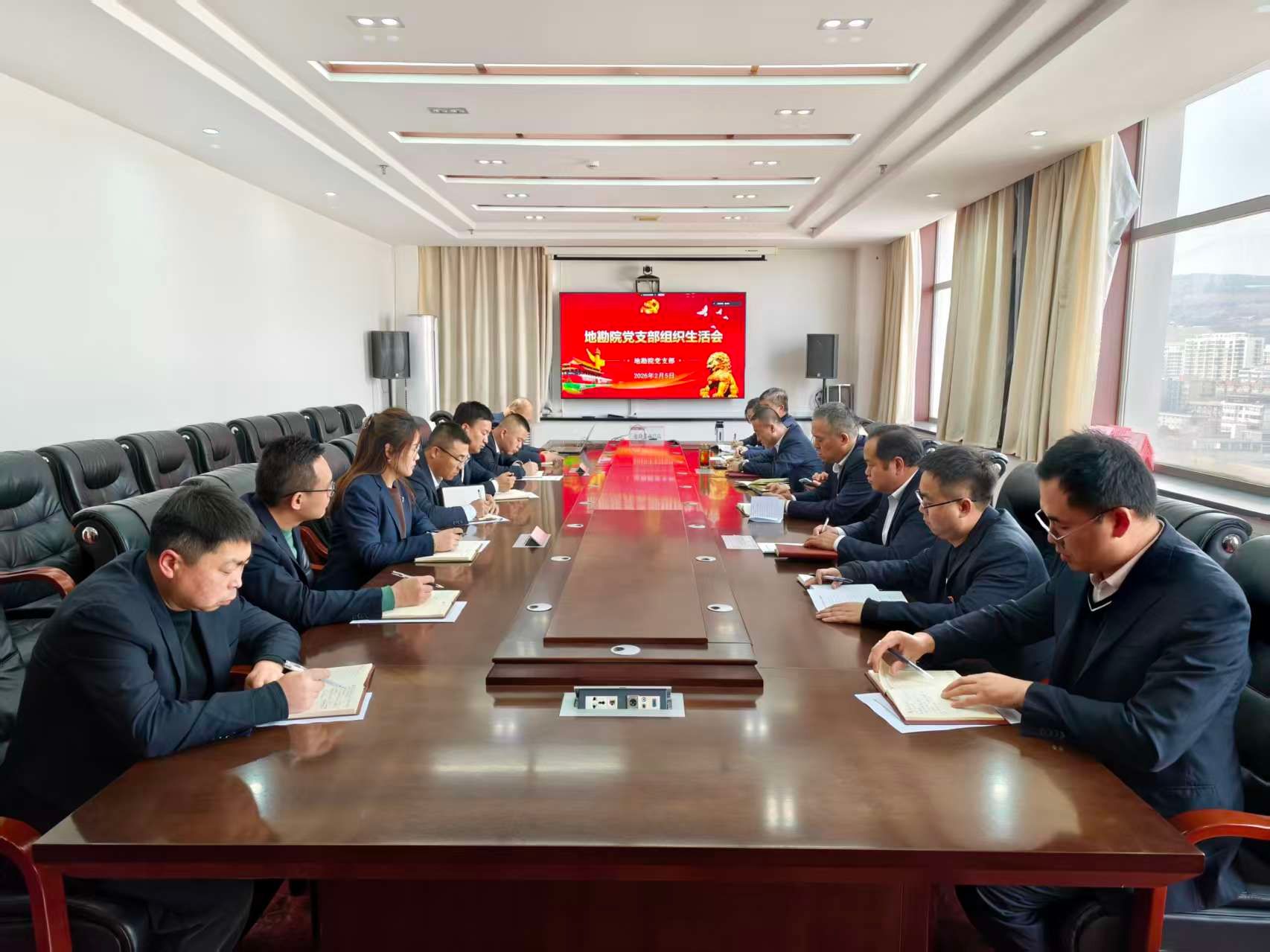 2月5日,地勘院党支部在中材大厦10楼会议室召开2025年度组织生活会。总队党委委员、纪委书记李宁,党委委员、副总队长鲁进贵到会指导,会议由地勘院党支部书记刘强主持,支部全体党员参加会议。