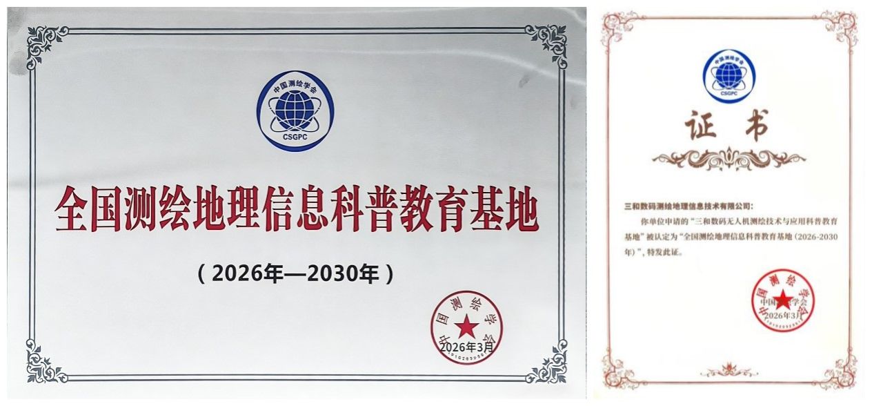 近日,2026年全国测绘学会工作会议在山东济南隆重召开。会议公布了全国测绘地理信息科普教育基地(2026-2030年)命名通知,三和数码申报的三和数码无人机测绘技术与应用科普教育基地”获评“全国测绘地理信息科普教育基地。
